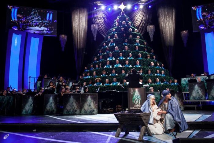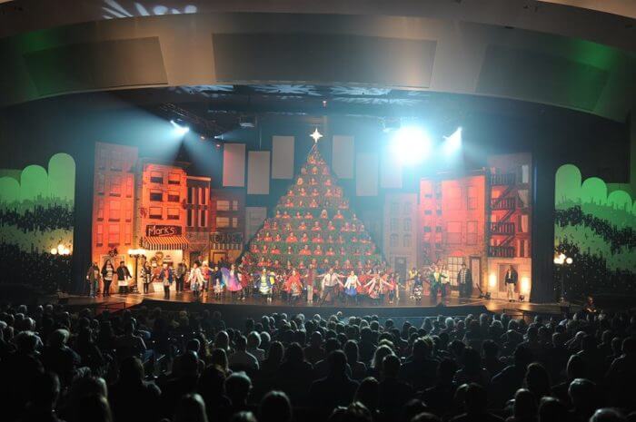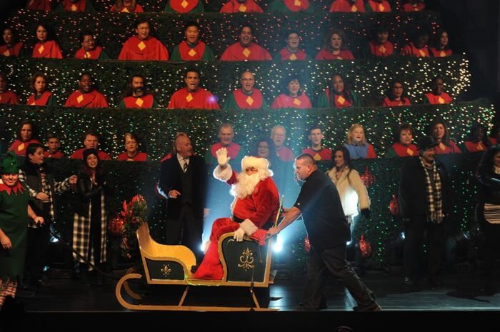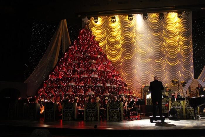 Вам, скорее всего, захочется спросить, что представляет собой эта елка? Отвечаем: это древообразная конструкция высотой 30 футов (чуть более 9 метров), вмещающая 110 участников хора. Каждый год сотни добровольцев берут на себя различные роли — от певцов до танцоров и драматургов, чтобы воплотить в жизнь идеальную рождественскую историю.