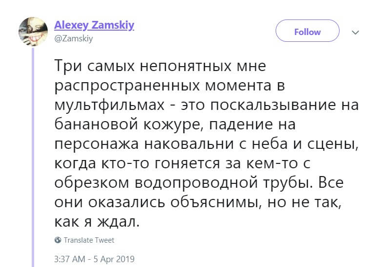 Почему в американских мультфильмах сбрасывают на голову наковальни и поскальзываются на банановой кожуре