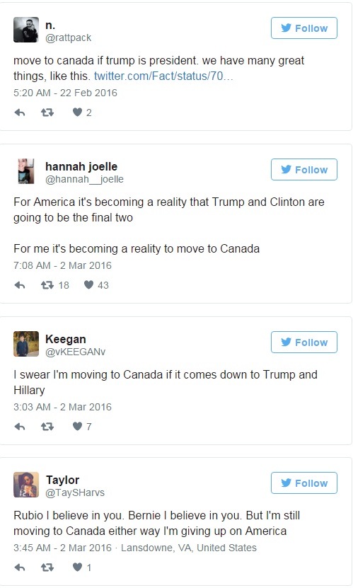 «Количество запросов «как я могу переехать в Канаду» в Google выросло на 350% в течение последних четырех часов», — написал он.