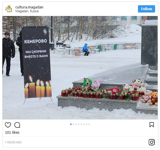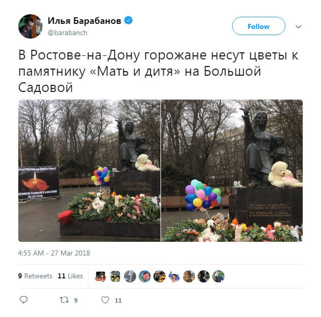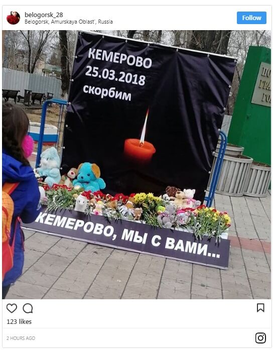 Пожар в торговом центре «Зимняя вишня» в Кемерове начался днем 25 марта. По последним официальным данным, в результате пожара погибли 64 человека, несколько десятков пострадали. В больницах, по состоянию на утро 27 марта, находились 13 пострадавших при пожаре, состояние одного из них — 11-летнего ребенка — врачи оценивали как тяжелое. В соцсетях активно распространяются сообщения, что на самом деле жертвами пожара стали несколько сотен человек.
