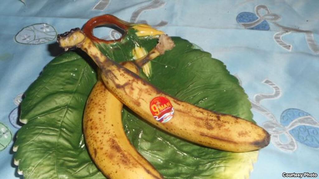 В России можно приобрести бананы с наклейками в честь 9 Мая. Сложно сказать, насколько распространенной является подобная маркировка этих фруктов, но в интервенте и соцсетях фото с подобных креативом набирают популярность.