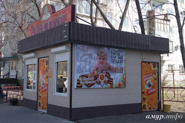 В городе Благовещенске появился плакат с изображением ребенка в пилотке Красной армии и лозунгом: “Я тоже буду героем — как мой прадед”. Некоторые пользователи соцсетей утверждают, что на заднем плане фото малыша-красноармейца размещены картинки с немецкими солдатами.