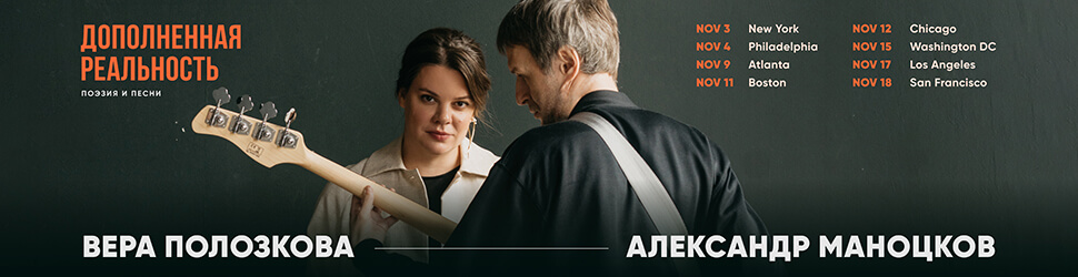 Российская поэтесса Вера Полозкова и композитор Александр Маноцков в ноябре отправятся в тур по США с «Дополненной реальностью». Нас ждет пронзительная поэзия о «духе времени» под музыкальный аккомпанемент.