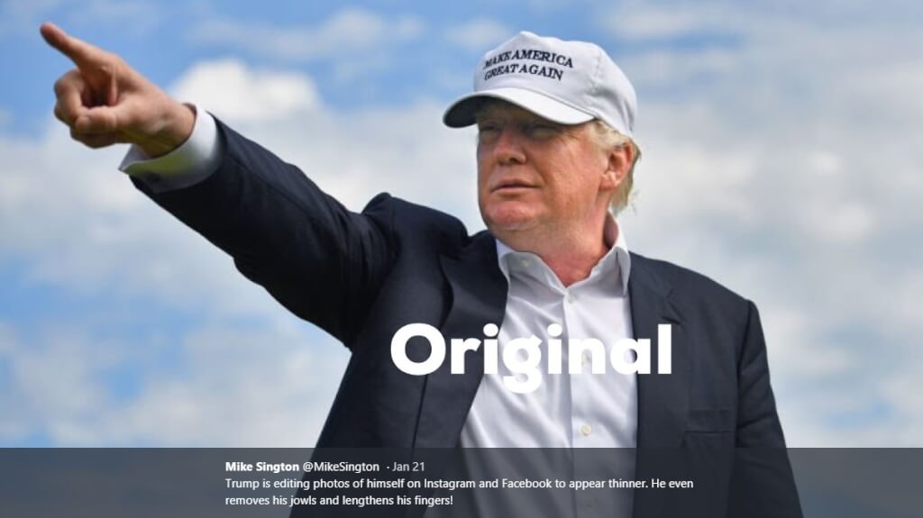 Проверка слуха: команда Трампа на его фото в соцсетях убирает живот, морщины и удлиняет пальцы