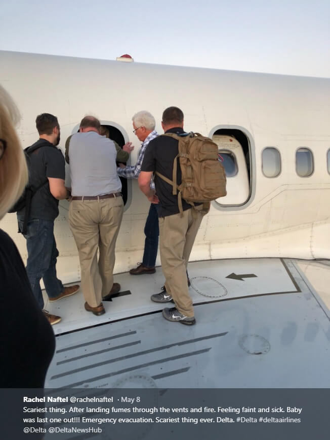 Другой пассажир, Рейчел Нафтель, написала в Twitter, что ей стало плохо после эвакуации. Она также утверждает, что ее ребенка сняли с самолета в последнюю очередь, написав, что это было самым страшным для нее.