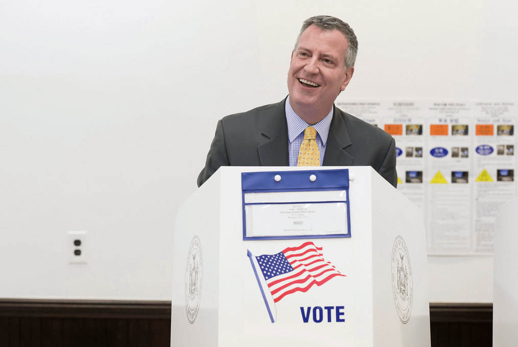 Де Блазио имеет ярко выраженную расовую брешь. Так, среди темнокожих избирателей его одобрили 71%, не одобрили — 12%. Среди латиноамериканцев 61% одобрили, 19% — нет. Белые избиратели разделились на 50% «за» и 34% «против».
