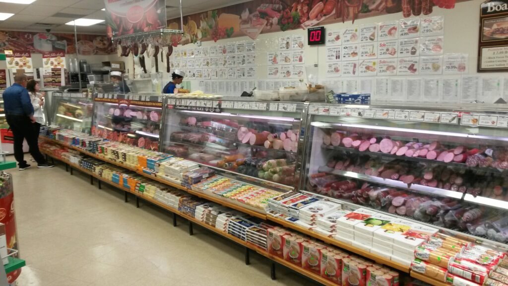 А вот теперь несколько слов о магазине. Первое, что сразу бросилось в уши — русская речь на фоне. То есть не ты говоришь, а кто-то вокруг тебя разговаривает по-русски. Я от этого уже немного отвык. Затем, я увидел витрину с кулинарией точь-в-точь, как в родном Чепецке! Какие-то жареные котлетки, соленья, оливье, греча. И продавцы в магазине — женщины 40-60 лет, — в голубых фартуках и шапочках для волос! Полное ощущение, что магазин находится в отдаленной российской глубинке. С одной стороны, все такое родное, а с другой — как-то не вяжется это с Америкой 21-го века.