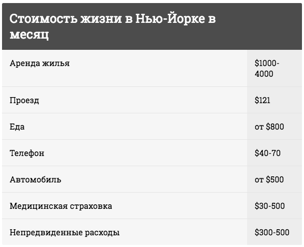 Сколько денег стоит иметь при себе, если вы решили переехать в Нью-Йорк