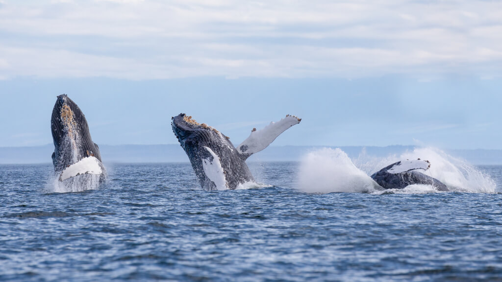 Рыбак снял, как три кита синхронно выпрыгнули из воды: этому видео завидуют даже опытные океанологи