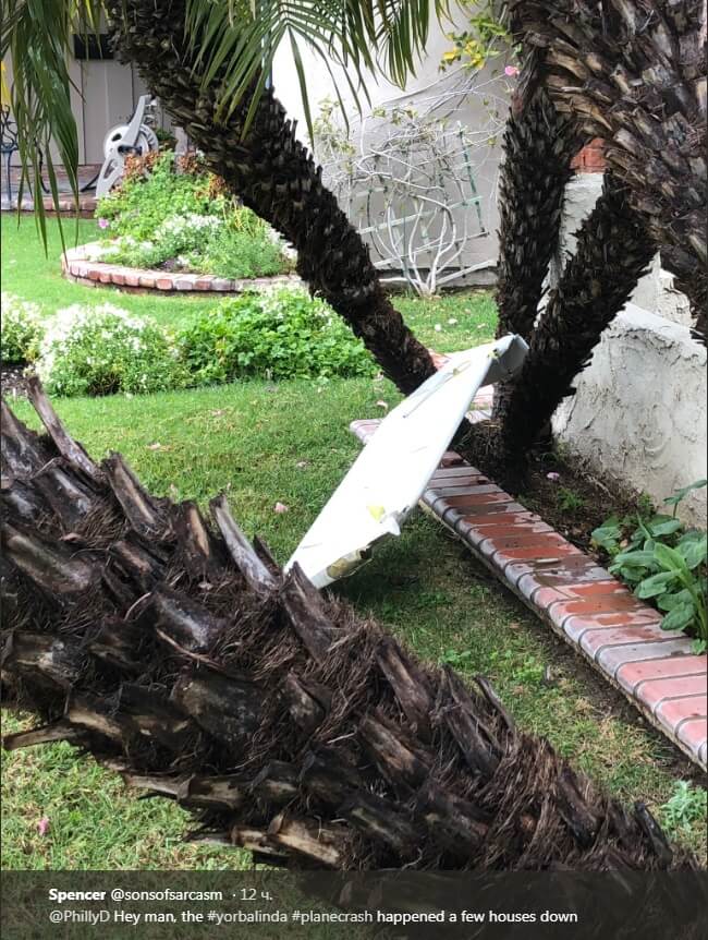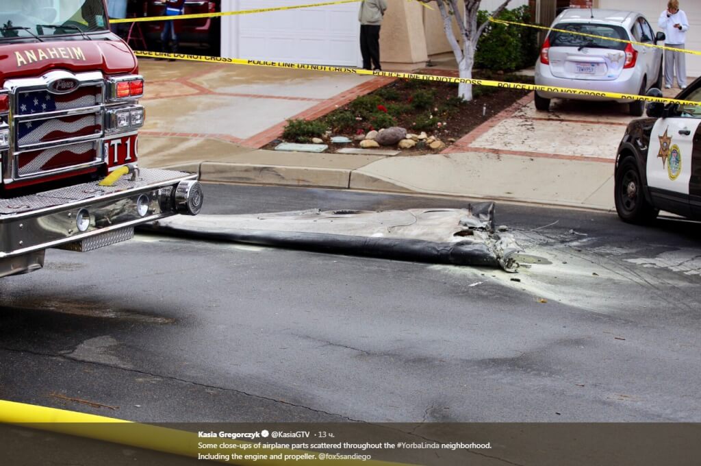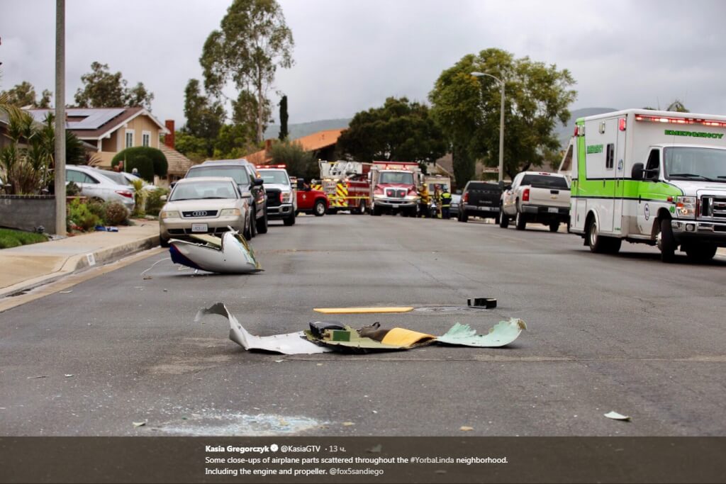 По данным властей, жители района Йорба Линда были в панике около 2 часов дня, когда в воздухе начал разваливаться небольшой самолет, разбрасывая обломки по всему району.