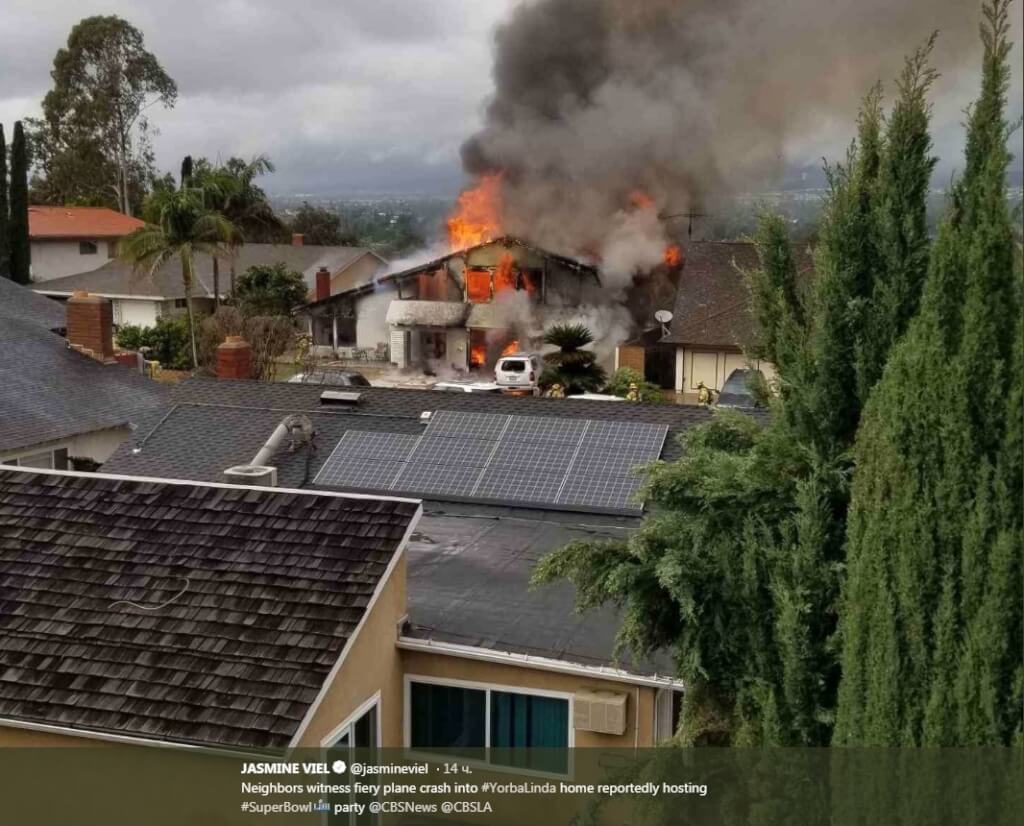 Согласно фотографиям и видео, размещенным в Интернете, район Йорба Линда, расположенный примерно в 30 милях к юго-востоку от Лос-Анджелеса, был покрыт дымом и мусором после аварии и последующего пожара.