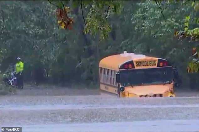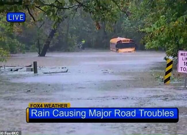 В Канзас-Сити в паводковых водах застрял автобус с 20 школьниками, которых пришлось спасать из неожиданной водной ловушки. В понедельник утром автобус направлялся в среднюю школу Raytown South и увяз в огромной луже на Олдхэм-роуд, улице, затопленной после проливного дождя.