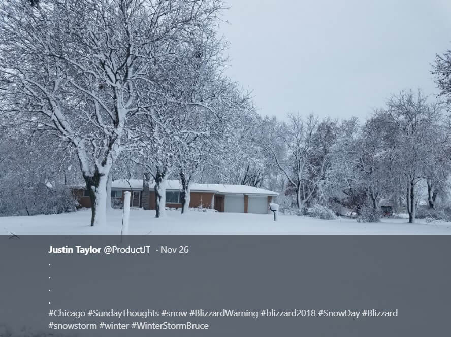 Буря принесла сильный снег из Колорадо и Вайоминга, где выпало до 60 дюймов (150 см) осадков, через Средний Запад, включая Айову (здесь было 17 дюймов — более 40 см). Шторм всерьез ударил по окрестностям и самому городу Чикаго — выпало более 7 дюймов (более 17 см) снега. Этот снегопад здесь стал самым сильным ноябрьским снегопадом, начиная с 1975 года.