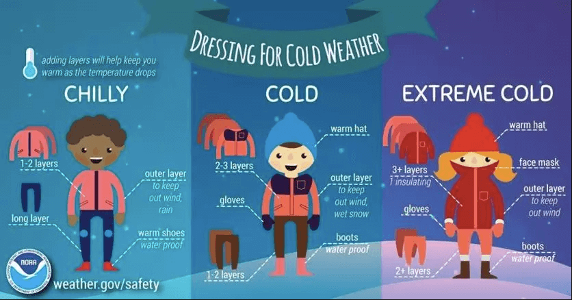 Поэтому Национальная служба погоды выпустила руководство для родителей о том, как правильно одевать детей в холодную погоду.