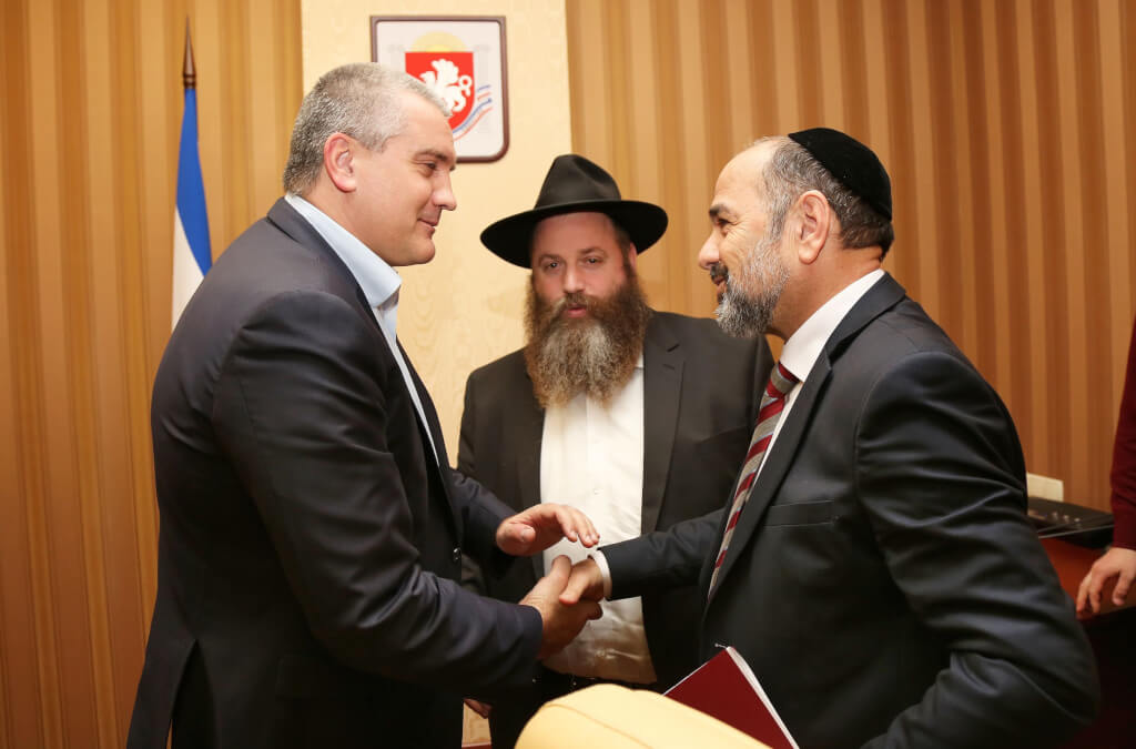 Сергей Аксенов, раввин Биньямин Вольф и депутат Кнессета Яаков Марги в Крыму.