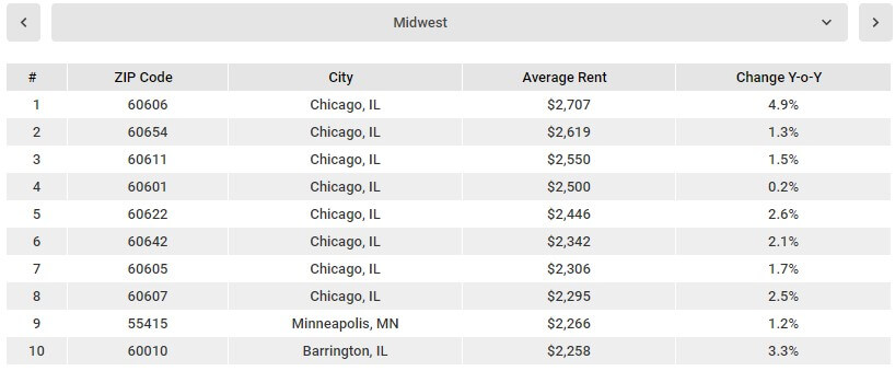 10 самых дорогих почтовых индексов в каждом регионе США (Rent Cafe):