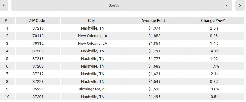 И пока некоторые Манхэттенские ZIP командуют парадом, есть много городских районов, где вы можете легко найти достойную квартиру наполовину или даже на две трети дешевле. Почтовые индексы 67213, 67211 и 67218 в Уичито, Канзас, предлагают среднюю арендную плату ниже 470 долларов. Другие места с оплатой ниже 500 долларов включают Мемфис, Теннесси, с тремя почтовыми индексами, и большую часть города Декейтер, штат Алабама. В нижней части списка преобладают рынки Южного и Среднего Запада. На западе арендная плата, как правило, выше, но Тусон, Аризона с индексом 85711 предлагает $ 571, самый дешевый вариант арендной платы к западу от Уичито.