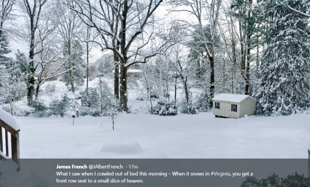 5th Street in Charlottesville has a thin layer of snow on it. Take it slow! #vawx #virginia pic.twitter.com/3huwNRmHcI