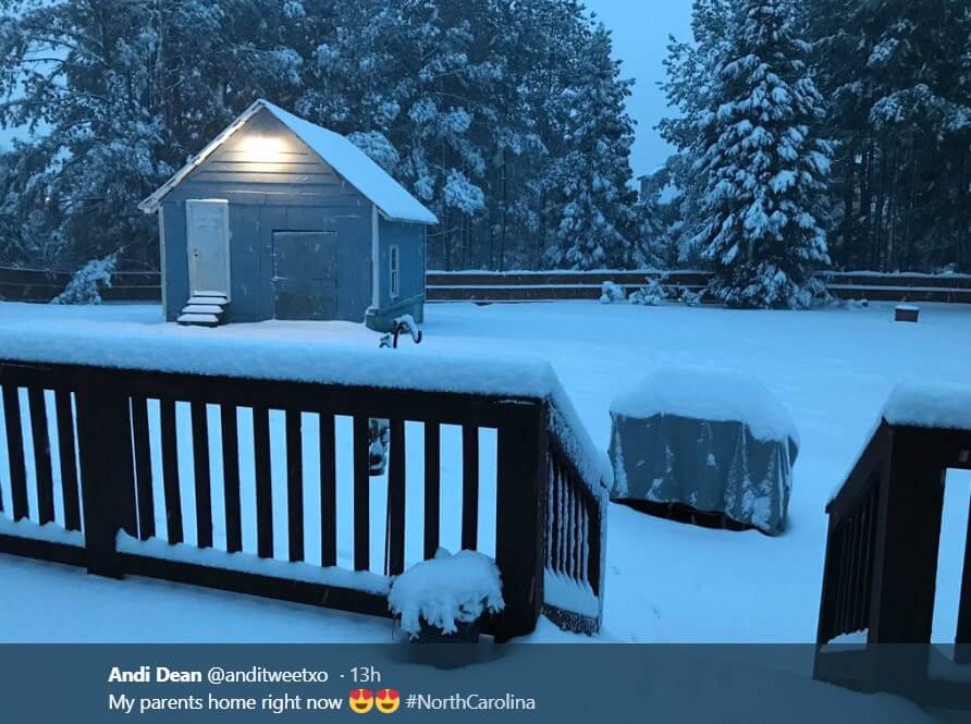 WOAH…, Very intense #snow in Rocky Mount, #NorthCarolina, USA this morning 9th December…. report; @JRoseWx #severeweather #snowfall #extremeweather pic.twitter.com/MNLUMGCGOU