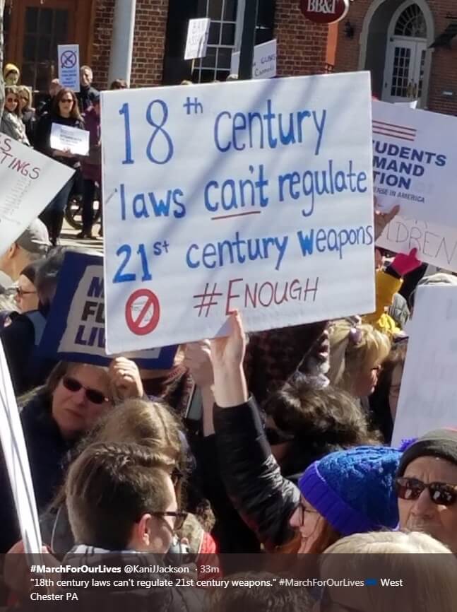 Организаторами массовой протестной акции выступили ученики школы Marjory Stoneman Douglas в Паркленде, штат Флорида, где 14 февраля в результате стрельбы погибли 17 человек. После этого активисты начали кампанию, вскоре ставшую общенациональной, требуя запретить свободную продажу оружия и ужесточить контроль в этой сфере. Несмотря на широкую общественную поддержку, федеральные власти в Вашингтоне и Конгресс США пока не ответили на требования школьников из Флориды.
