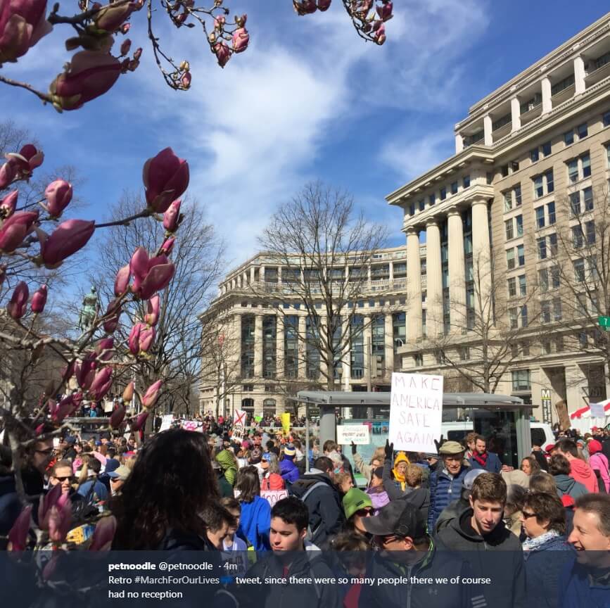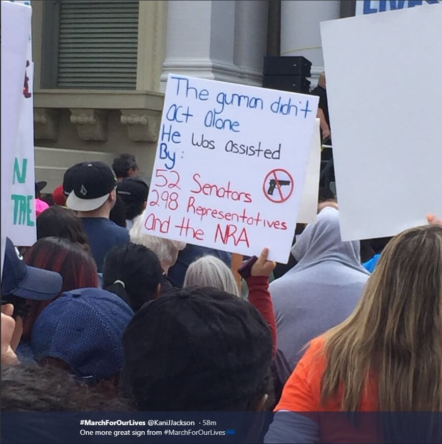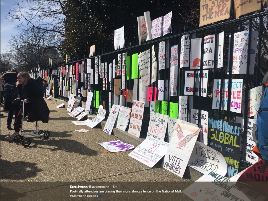 March For Our Lives («Марш за наши жизни») вырос из движения, призывавшего к законодательным изменениям, после того как 17 человек погибли в результате вооруженного нападения в средней школе во Флориде в прошлом месяце.