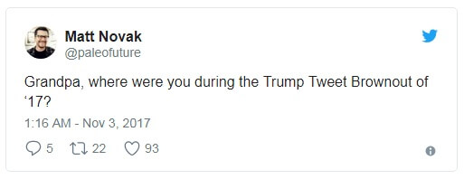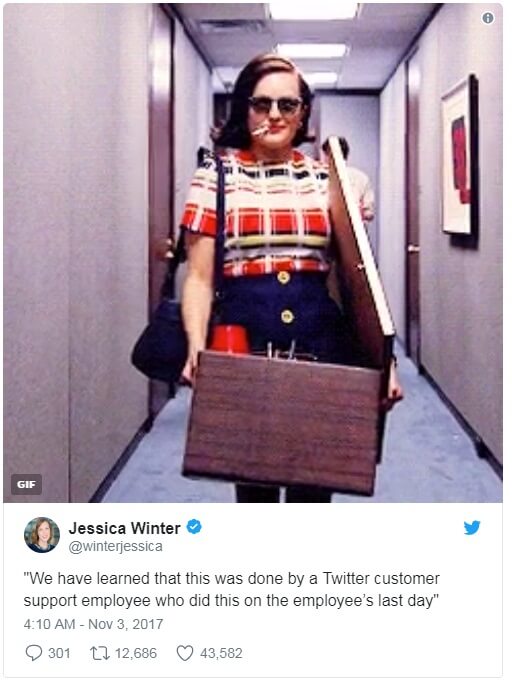 Сперва сообщалось, что блог Трампа был «непреднамеренно дезактивирован из-за человеческой ошибки». Но через пару часов Twitter объявил о дальнейшем расследовании. Позже стало известно, что это был не сбой, а дело рук сотрудника Twitter в его или ее последний день на работе.