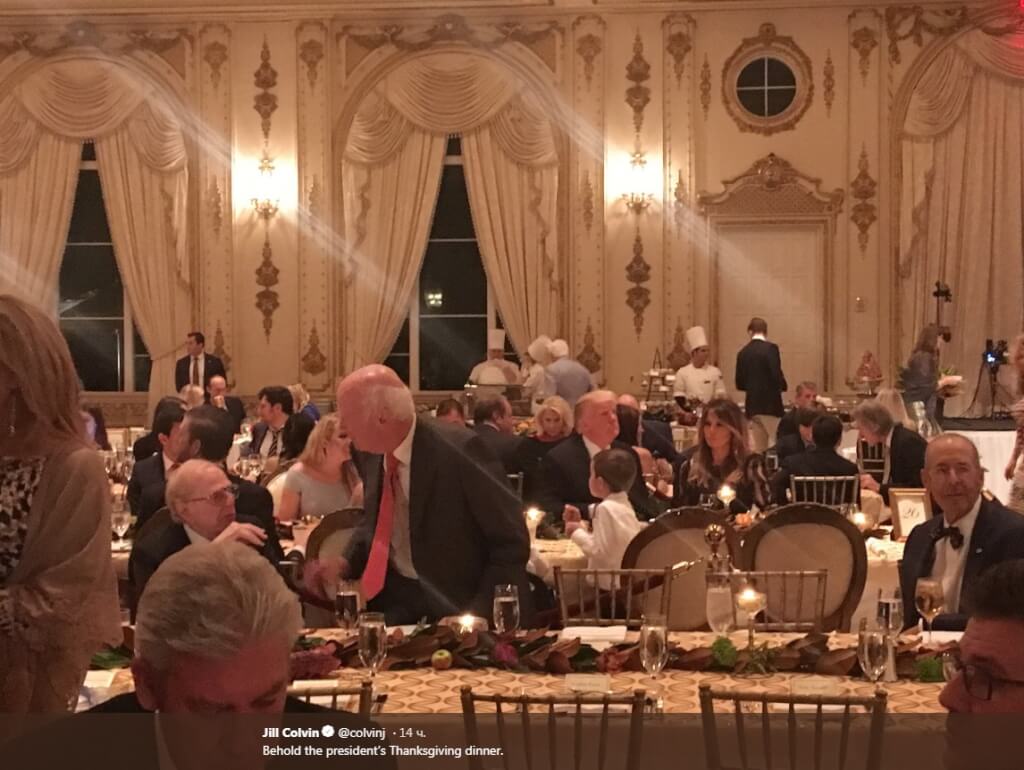 Президент Трамп и его семья провели День благодарения на курорте Трампа Мар-а-Лаго во Флориде, а экс-президент Барак Обама решил сделать неожиданный визит и помочь волонтерам накормить бездомных и нуждающихся.