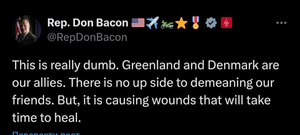 Любопытно, что некоторые влиятельные республиканцы тоже критически отнеслись к словам Миллера. Резче всех выразился конгрессмен-республиканец Дон Бэкон. В своем посте на Х он назвал их «тупыми».