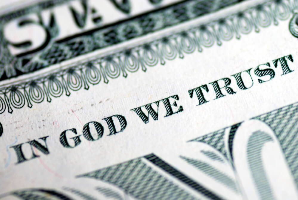 Фраза «Мы верим в Бога» впервые появилась на монетах во время гражданской войны в США в 1864 году по инициативе министерства финансов. Последнее согласилось с доводами одного из священников-баптистов, предлагавшего упомянуть Бога на деньгах «ради борьбы с язычниками».