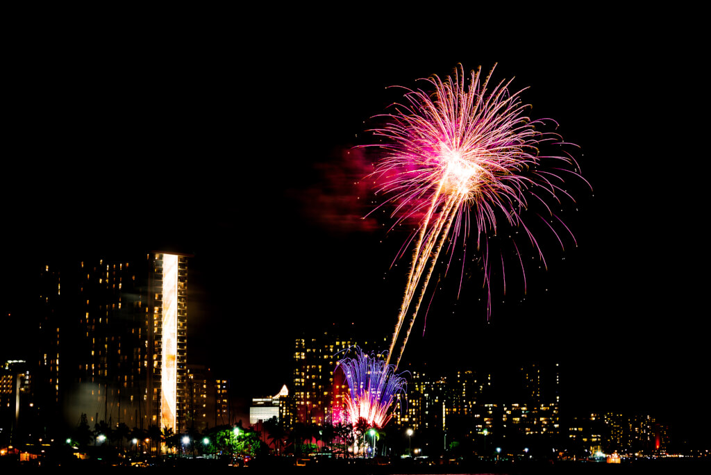 Гонолулу сочетает в себе городскую атмосферу Вайкики и тропическую природу северного побережья Оаху. Одно из самых необычных новогодних развлечений — традиционный праздник луау, например Waikiki Starlight Luau в курорте Hilton Hawaiian Village Waikiki Beach Resort. В паре километров, на территории Aloha Tower Marketplace, проходит ежегодная новогодняя «Вечеринка года» с аттракционами, фудтраками, диджеями и живой музыкой, завершающаяся салютом в полночь. А для того, чтобы полюбоваться фейерверком с другой точки, можно отправиться в круиз на Star of Honolulu.