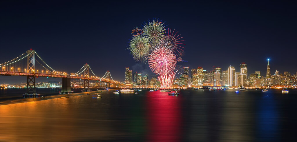 Расположение города на берегу залива делает новогодние праздники в Сан-Франциско особенными, включая впечатляющий фейерверк над набережной. Компания Hornblower предлагает праздничные прогулки на воде — с бранчем, ужином и салютом. В городе также проходят масштабные балы, например Passport to the World New Year’s Eve Ball с несколькими диджеями, живой музыкой, шоу-программой и безлимитным баром. Если хочется более спокойного формата, поднимайтесь, например, на Твин-Пикс, одну из самых высоких точек города, или отправляйтесь на набережную Эмбаркадеро, чтобы увидеть фейерверк в полночь.