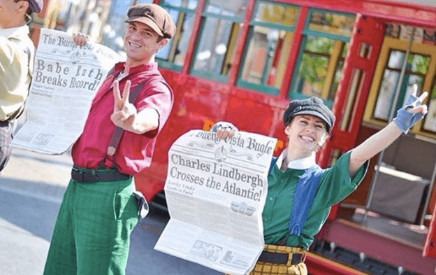 В Диснейленде можно совершенно бесплатно почитать вымышленные новости за 1920-е годы. Газеты с этими новостями можно получить на троллейбусной остановке “Красный автомобиль”.