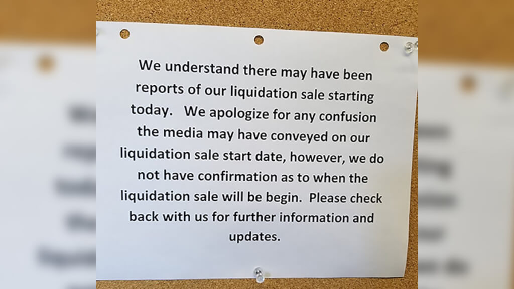 Ранее Fox News писали, что компания будет предлагать большие скидки на товары, так как планирует распродать свои запасы к июню. Ожидается, что процесс ликвидации магазинов займет около 14 недель, хотя некоторые магазины могут закрыться раньше, если запасы товаров будут распроданы.