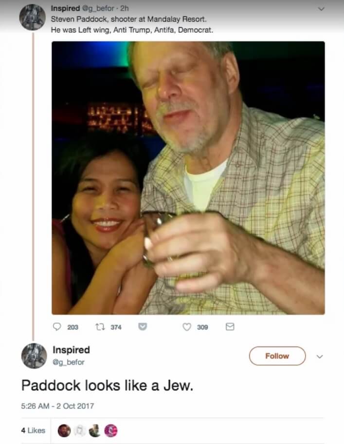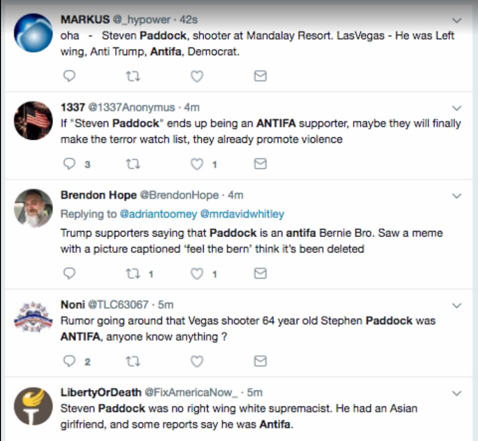 9. Несколько крайне правых сообществ выдвигают теорию заговора, согласно которой Стивен Паддок, человек, идентифицированный полицией как предполагаемый стрелок, связан с антифашистскими общинами.