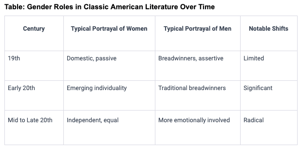 Narratives wield substantial influence in shaping societal ethos and values. Classic American literary compositions, diverse in theme and style, often converge in their dissection of matrimony and gender roles. Spanning from idyllic depictions in the 19th century to avant-garde notions in the 20th, these narratives have been pivotal in redefining and challenging conventional matrimonial and gender ideologies. They serve as portals into the evolving societal perceptions and anticipations regarding the roles of spouses within the conjugal bond.