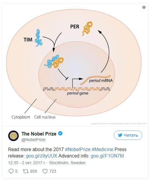 Премия присуждена за открытие молекулярных механизмов, контролирующих биологические часы. Джеффри Холл из Университета штата Мэн и Майкл Янг из Рокфеллеровского университета в Нью-Йорке вместе с Росбаш получат премию в размере 9 миллионов шведских крон ($1,1 миллиона).