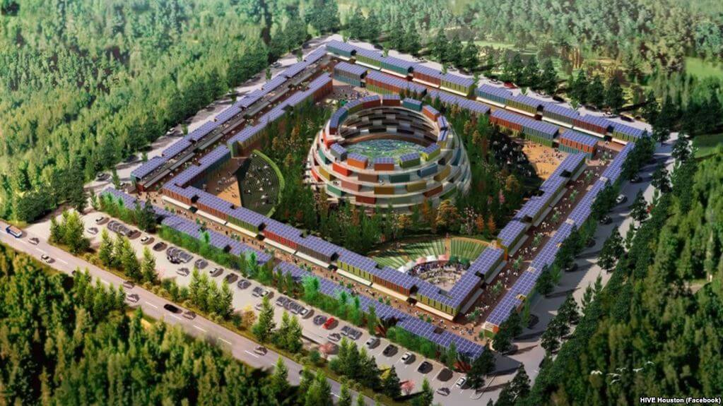 Проект «Улей» художника и строителя Нестора Топчий, целью которого является создание доступного жилья и рабочих мест для общества Хьюстона с помощью грузовых контейнеров, приобретает особую актуальность после того, как ураган Харви уничтожил десятки тысяч домов, пишет «Голос Америки».