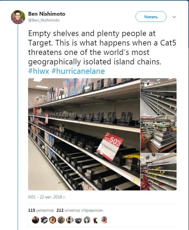 Все острова получили предупреждение о приближении урагана. Оно действует как для Большого острова, так и для округа Мауи и Оаху. В Кауаи и Нийхау в ближайшие дни ожидается ветер не менее 39 миль в час (62 км/час).