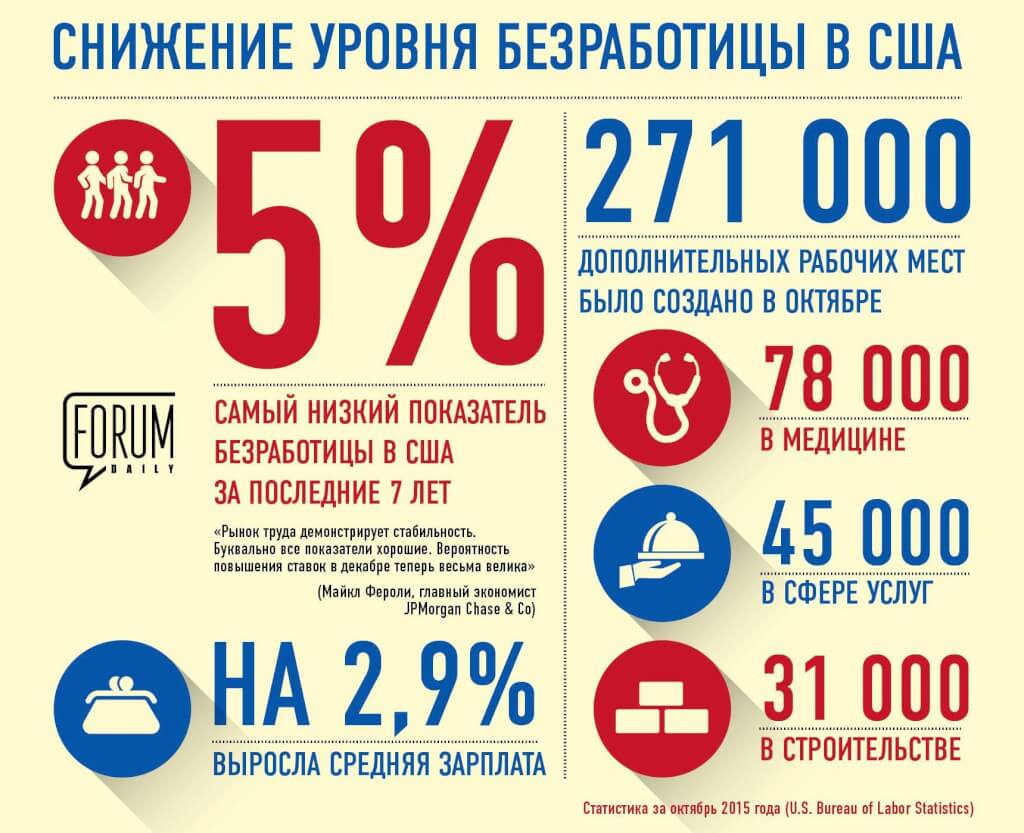 Безработица в США в октябре снизилась до 5 процентов. Инфографика: Форум Daily