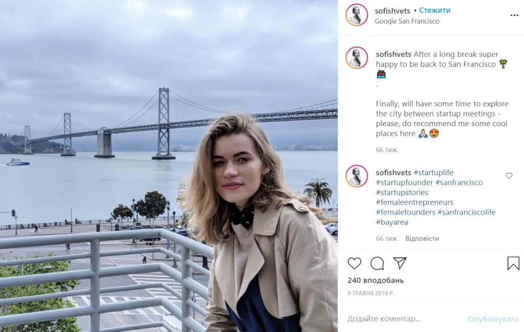 До переезда я была в Америке несколько раз и поняла, что здесь — самая большая стартап-комьюнити в мире. Для меня переезд в Штаты — это переход в «высшую лигу». Я чувствую себя маленькой частичкой этой экосистемы. Здесь такое впечатление, что все вокруг уже запустили 5 проектов, из которых 4 провалили, а затем подняли 5 000 000. Это дает магический пинок двигаться быстрее.