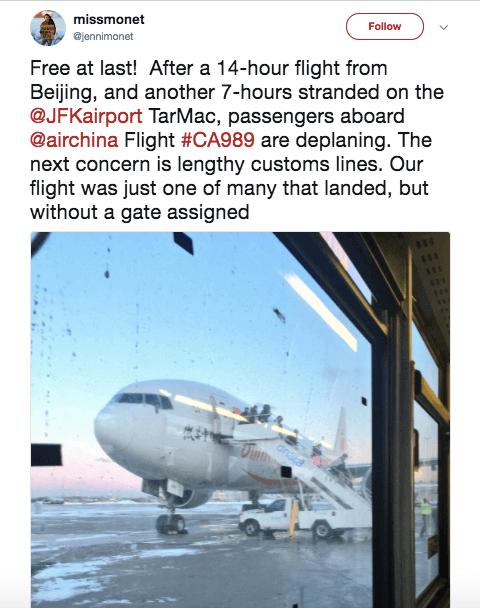 «Мы любим Нью-Йорк, но мы здесь застряли. Это неприятно. Нас настиг снегопад, и мы застряли здесь на 13 часов», – заявил Кестер газете Daily News в воскресенье.