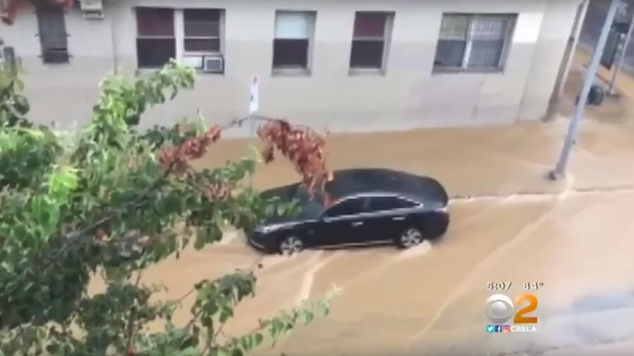 В воскресенье в Лос-Анджелесе произошло неожиданное наводнение, несмотря на жару и отсутствие осадков.