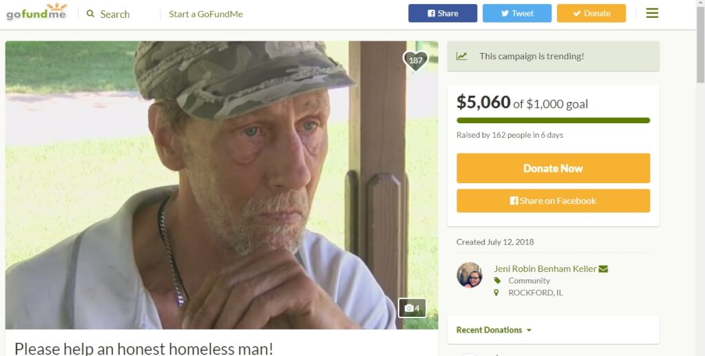 В Иллинойсе бездомному собирают деньги за добрый поступок