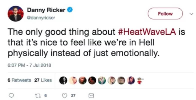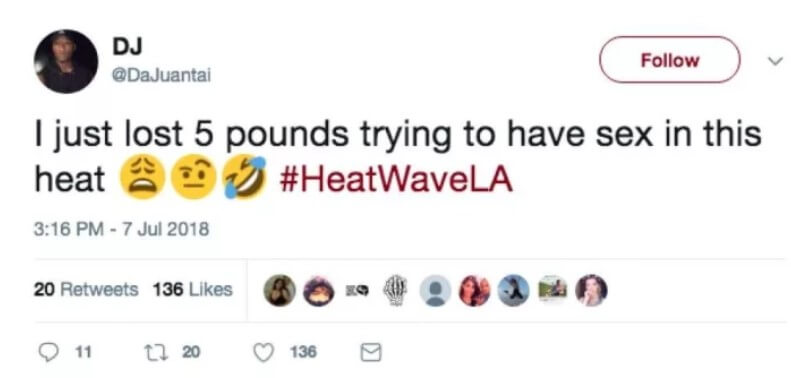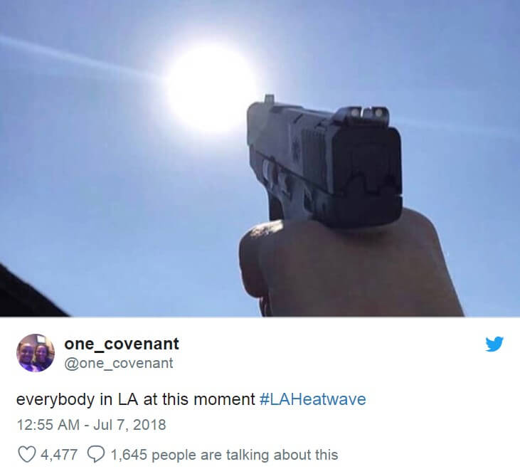 Me being from Phoenix and seeing all these Cali people who can’t handle the heat #HeatWave2018 #HeatWaveLA pic.twitter.com/ajwhxTxjVH