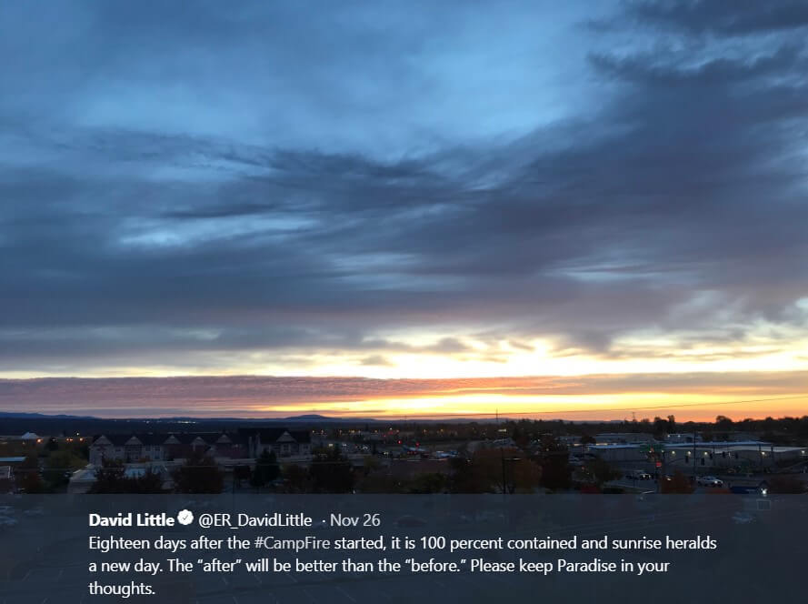 Как сообщили в департаменте лесного хозяйства и защиты от пожаров, взять под контроль огонь удалось не без помощи природы – после пожаров на Калифорнию обрушились ливни. С другой стороны, это усложняет условия поисковых операций и угрожает самим спасателям из-за возможности оползней.
