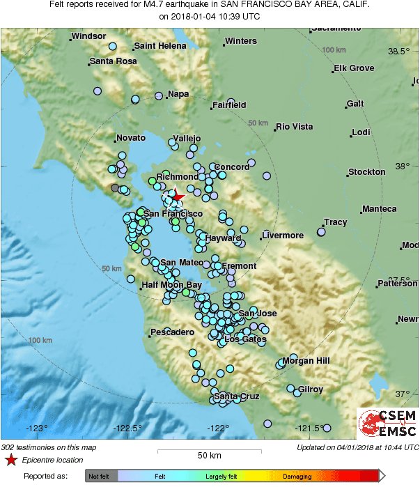 В Сан-Франциско около 2:40 утра в четверг, 4 января, произошло землетрясение магнитудой 4,4. Оно длилось около 10 секунд, пишет The Washington Post.