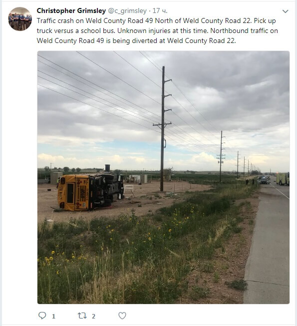 Согласно информации от патрульной службы штата Колорадо, водитель грузовика уснул за рулем и врезался в автобус в районе городка Хадсон. В результате столкновения автобус, в котором находилось 35 человек, слетел с дороги и перевернулся на бок.