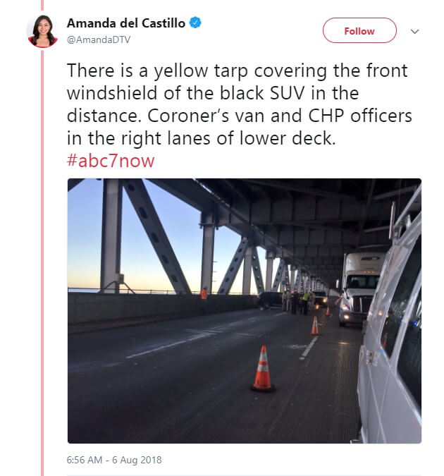 Мужчины ехали во внедорожнике по направлению из Сан-Франциско в Окленд в ночь с воскресенья на понедельник — примерно в два часа, когда рядом с ними оказался автомобиль и кто-то открыл огонь прямо по внедорожнику. В результате тот протаранил пять автомобилей — водитель погиб на месте и машина потеряла управление.