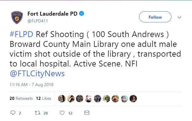 Полиция проводит расследование инцидента, в котором был застрелен один человек. Стрельбу открыл неизвестный возле Главной библиотеки округа Бровард в центре Форт-Лодердейла недалеко от Майами, штат Флорида.