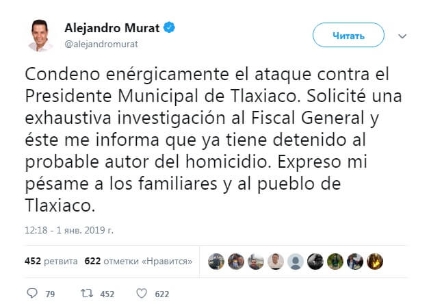 Губернатор Оахаки Алехандро Мурат осудил нападение во вторник и призвал к всестороннему расследованию смерти Апарисио.